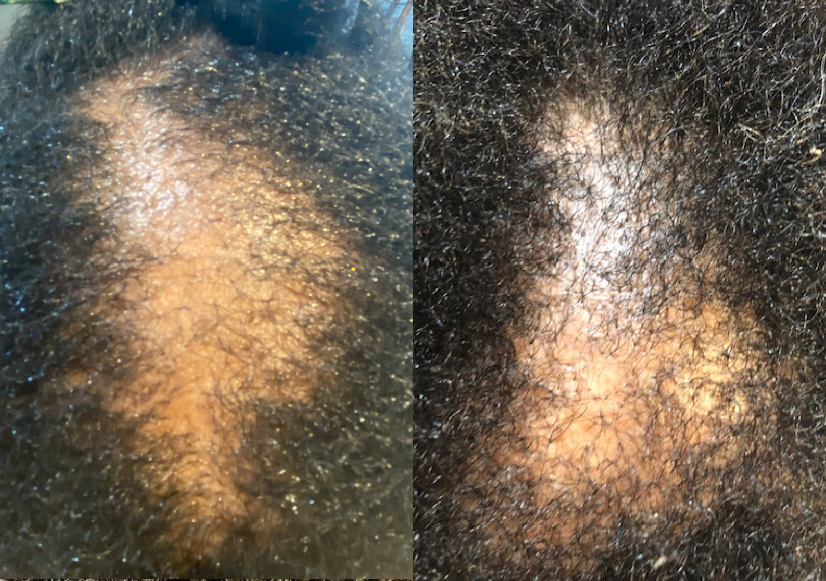 K. Nicole, 36 Received weekly hair loss treatment for 4 weeksThe micro needling treatment changed my life and brought back the first confidence that has left due to the thinning of my hair in the crown of my head. I am no longer self conscious when walking outside and the wind blows because I now know there is coverage. Discipline is definitely key to achieving the desired results so this means to feed your scalp from the inside out.